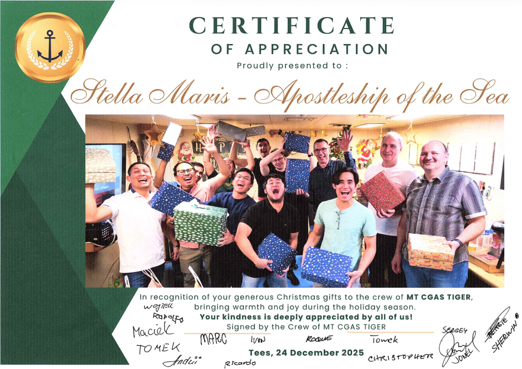 The ship visitors team of Stella Maris and the North and South Tees Missions were busy over Christmas delivering gifts to our visiting ships crews